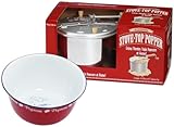 West Bend 6-Quart Stovetop Popcorn Popper with 6-Quart Enamelware Serving Bowl